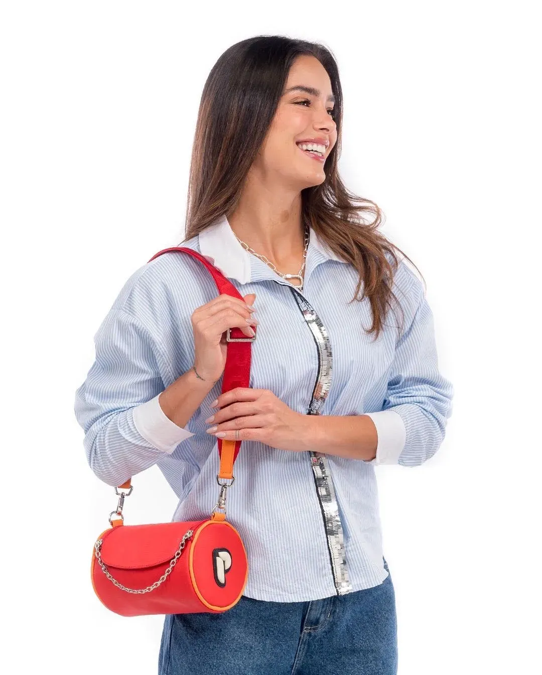Dale un toque único a tus looks con la bandolera de la colección "La Fábrica". Su diseño moderno y femenino incluye un nuevo strap de nylon ajustable y elegantes herrajes plateados que aportan un bril...