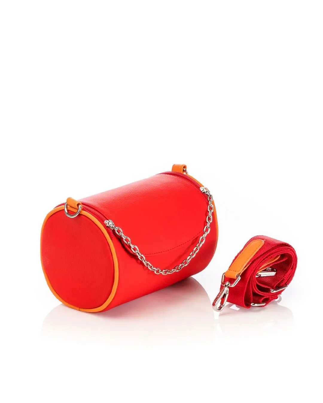 Bolso para mujer conforma cilíndrica petit en PVC broche con imán y bolsillo parche en color ivory