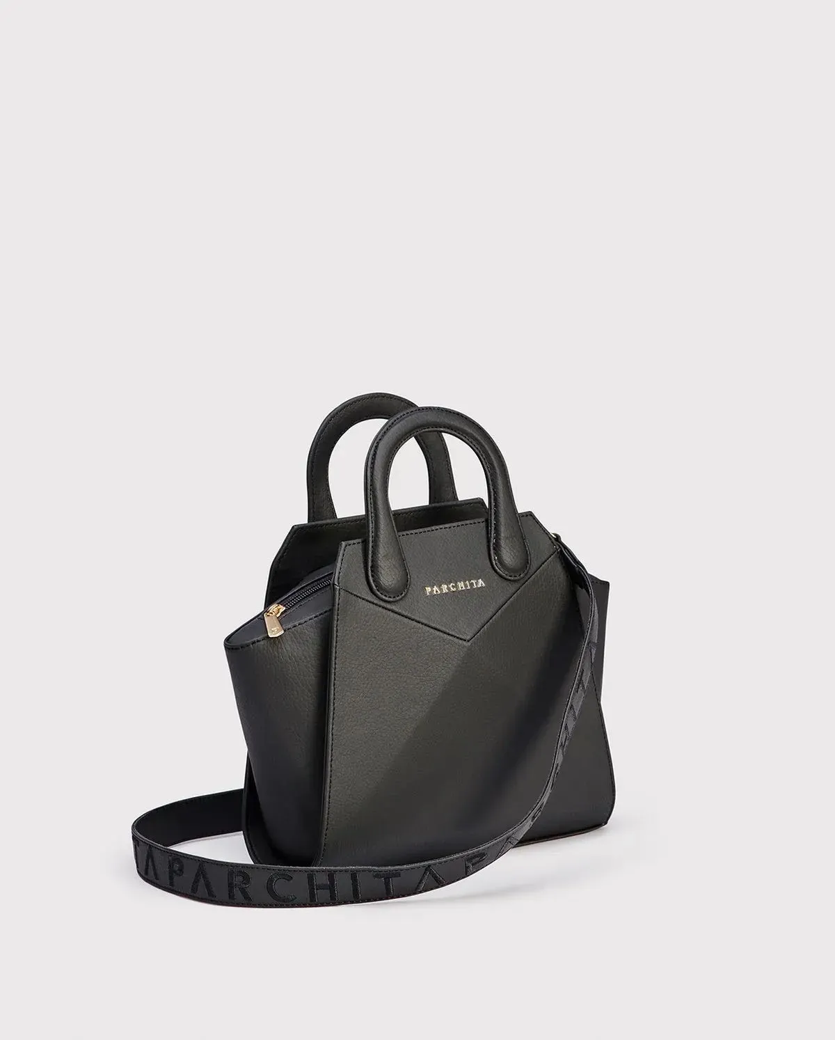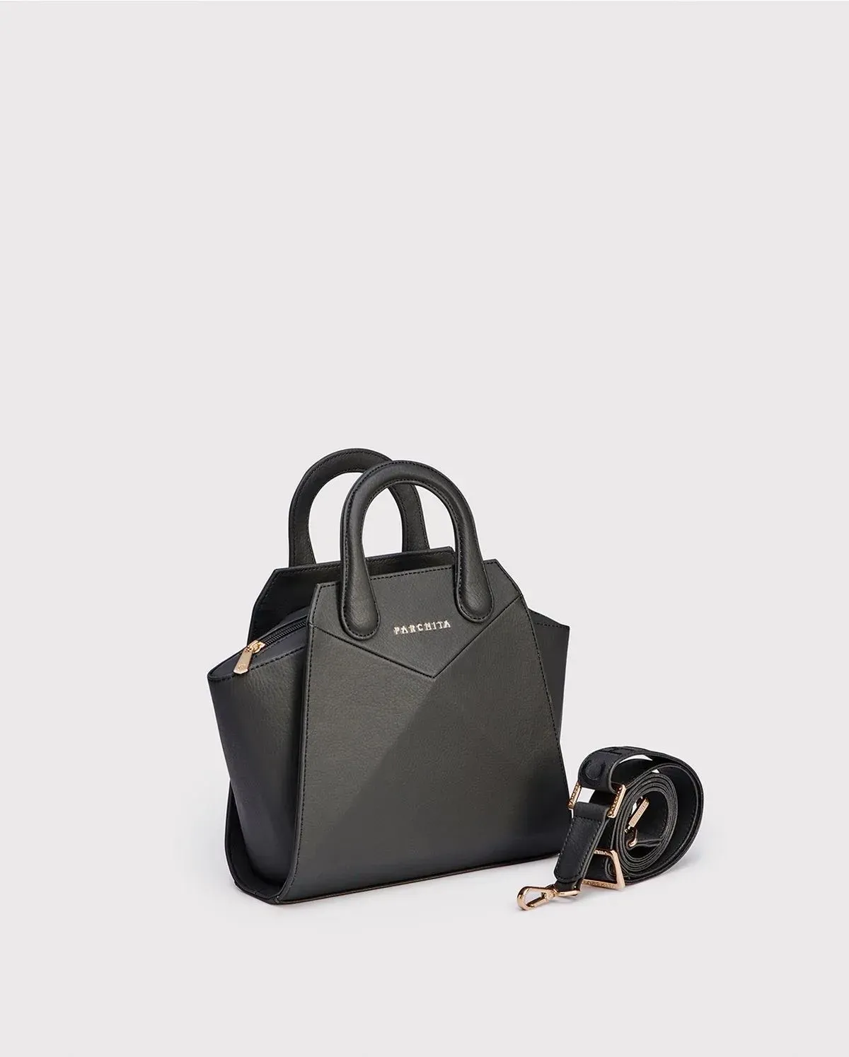 Bolso estructurado mediano de silueta geométrica tipo trapecio, con un diseño moderno y distintivo gracias a sus cortes en líneas diagonales. Cuenta con doble asa corta redondeada y un trap removible y ajustable bordado, ideal para llevar al hombro o cruzado, además, tiene un bolsillo tipo parche en...