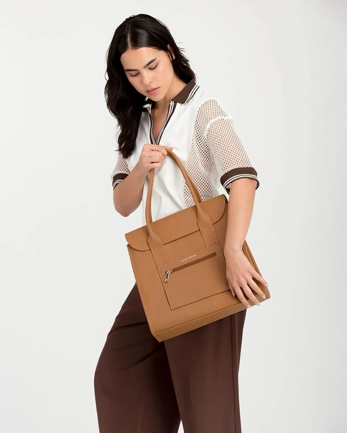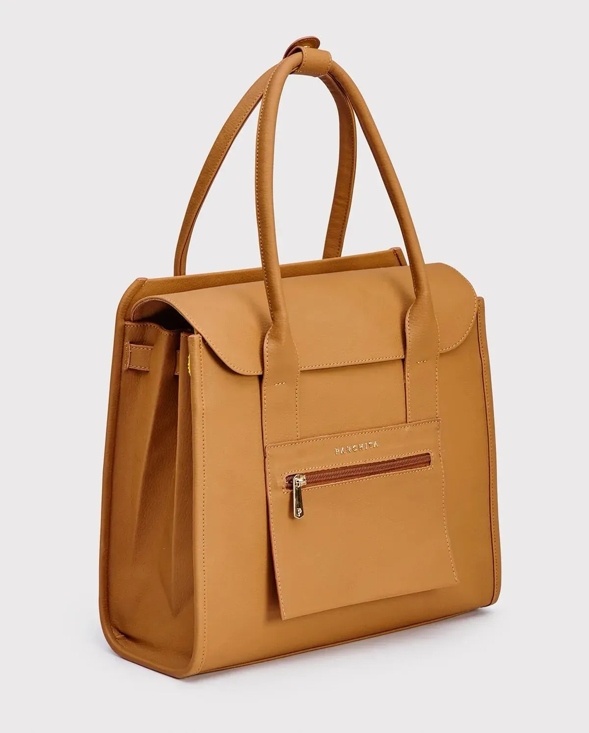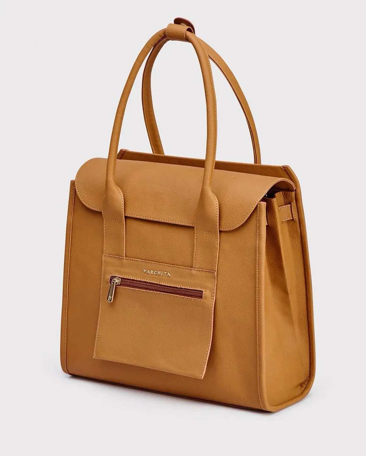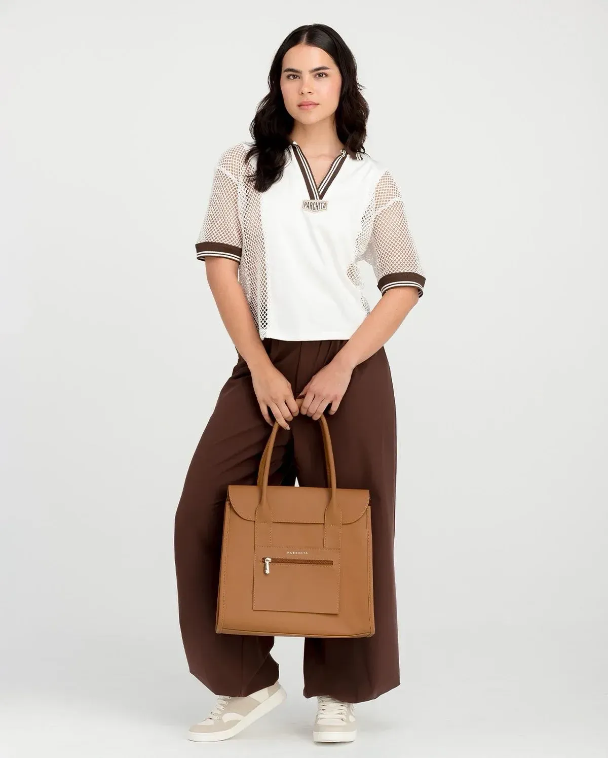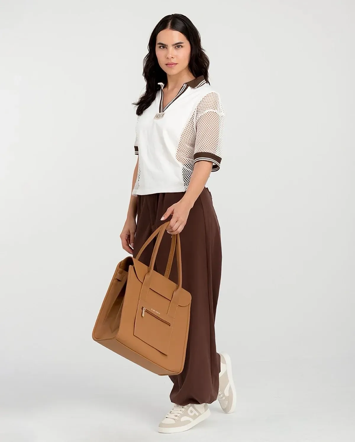 Este bolso combina amplitud, flexibilidad y estilo en una silueta sofisticada. Sus laterales tipo acordeón le dan un carácter dinámico, aportando volumen sin perder estructura ni elegancia. Cuenta con un práctico bolsillo colgante en el frente para tener tus esenciales siempre a la mano, y un bolsil...
