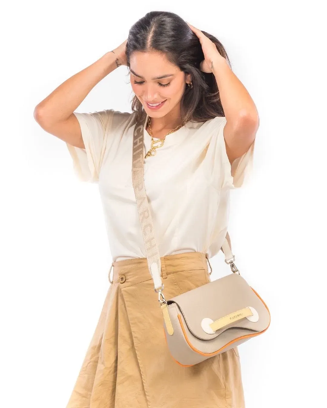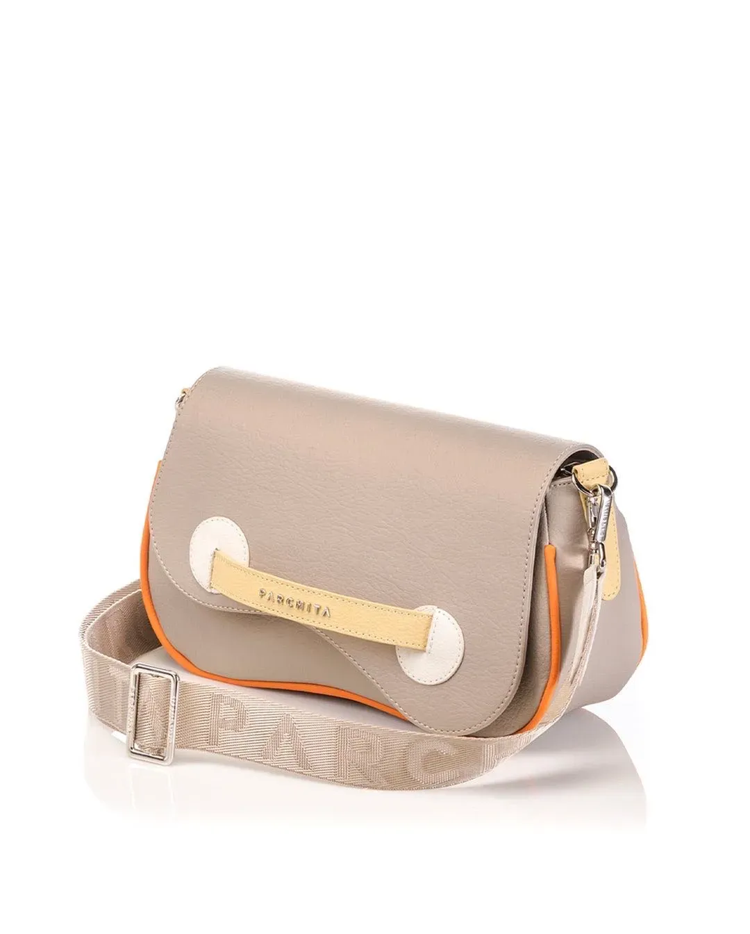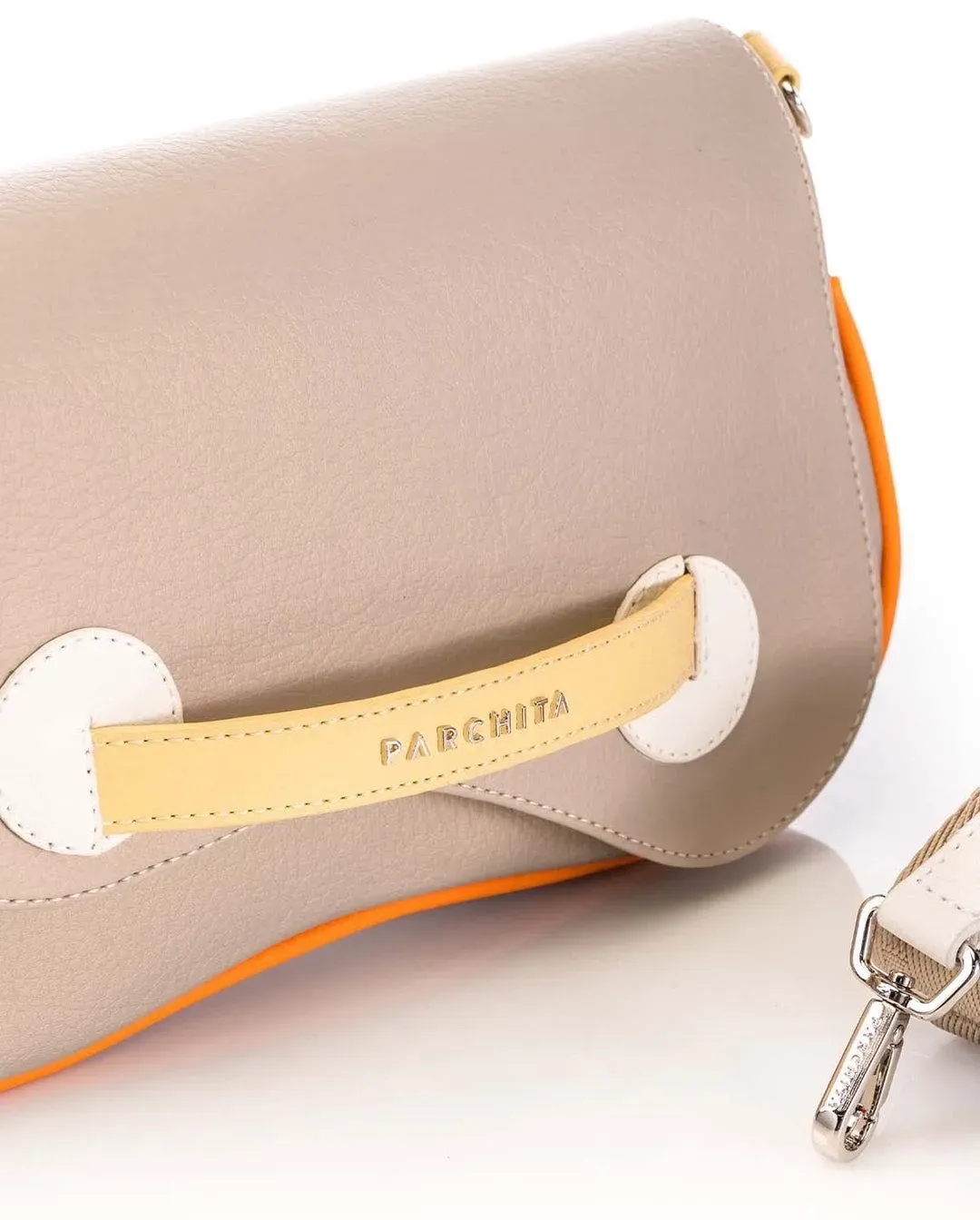 Cartera para mujer en PVC con broche en imán bolsillo interno cargadera ajustable.