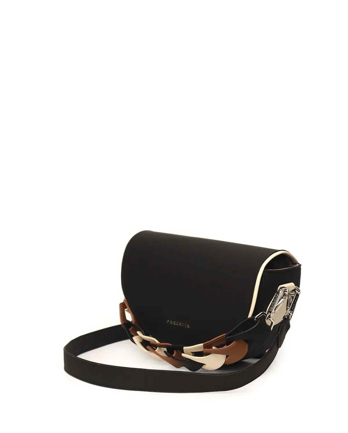 Estructurada mediana y compacta con tapa rigida e imán, cierre para mayor seguridad, manija de eslabones de colores que contrastan, strap ajustable y bolsillo colgante interno con cierre que permite llevar todas tus pertenencias organizadas. Es una cartera versátil, que puedes llevar en la mano o co...