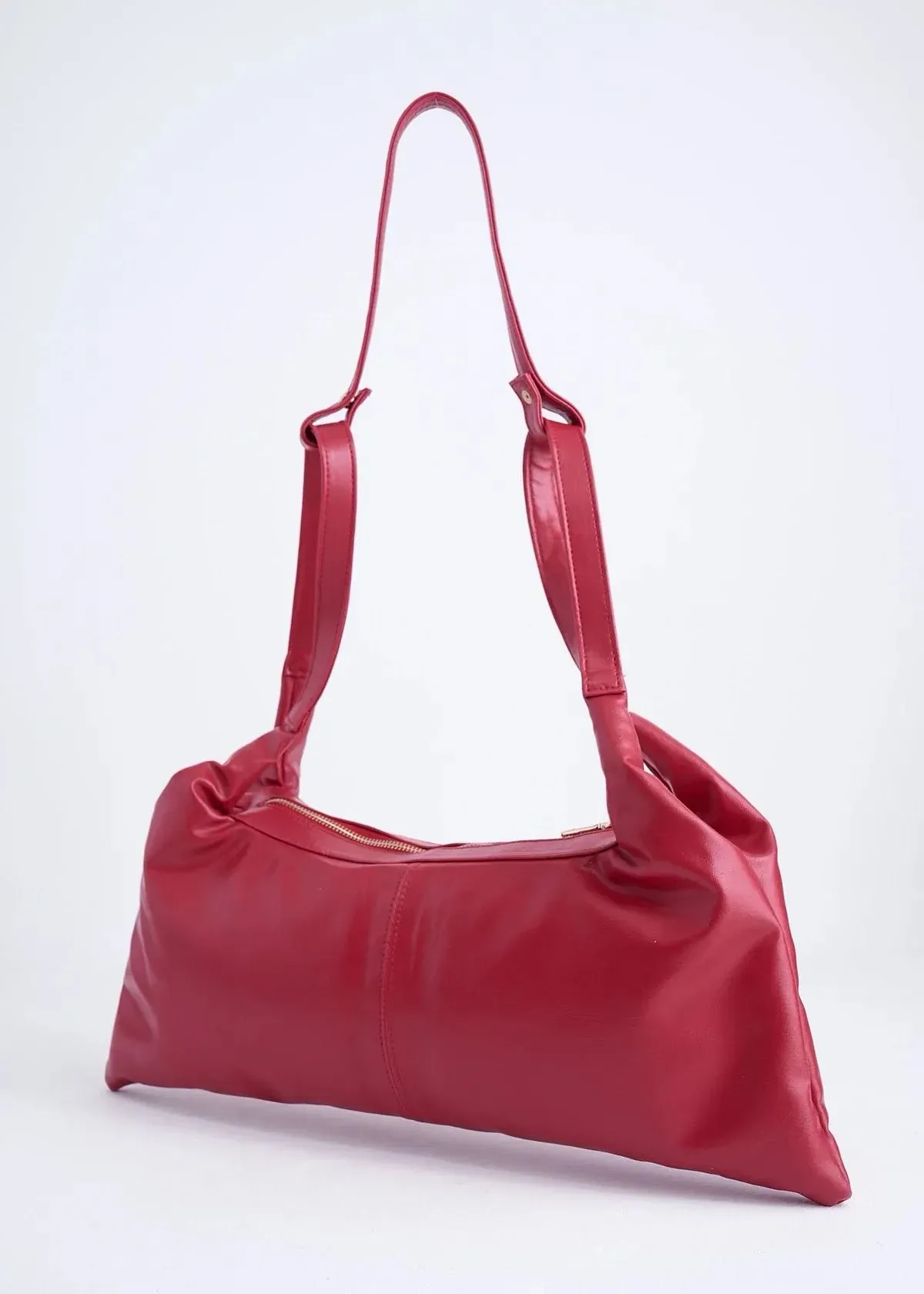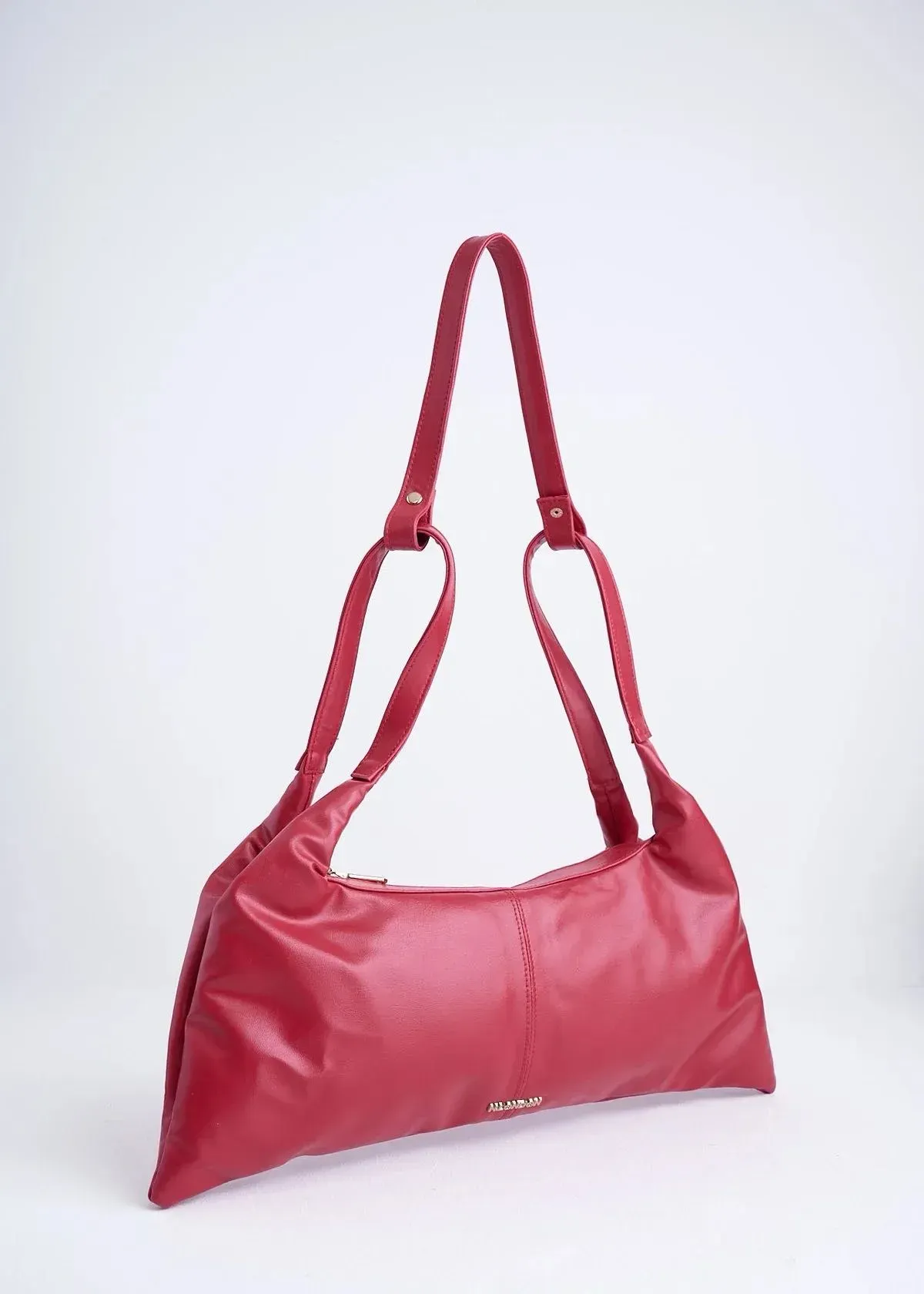 Elaborada en material sostenible a base de cáscara de naranja, esta bolsa fusiona conciencia ambiental y diseño moderno. Herrajes en tono dorado