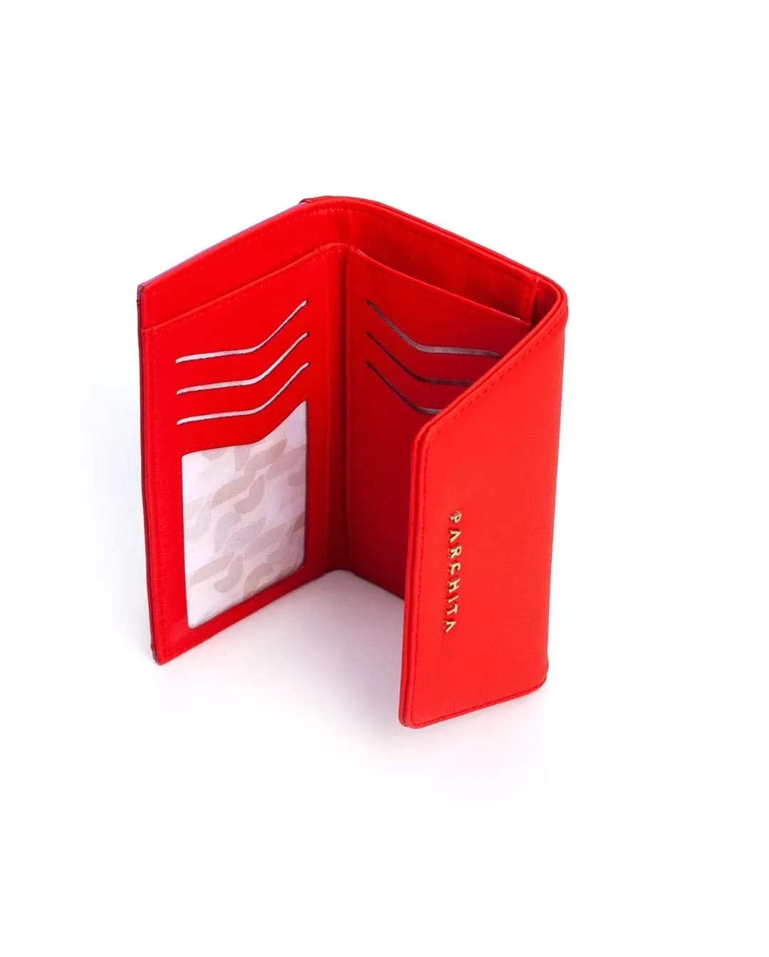 Billetera para mujer en PVC con bolsillos tarjeteros múltiples y monedero con cremallera en espaldar.